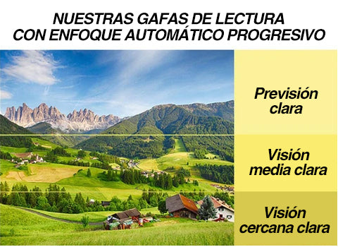Espejo de lectura con zoom inteligente - La lente progresiva no tiene una línea divisoria obvia entre los puntos focales, es suave y sin saltos de imagen, no es necesario quitarse las gafas y mover la línea de visión de arriba a abajo. Puede ver de lejos y de cerca las diferentes áreas visuales de la lente. Cosas a diferentes distancias en el medio.